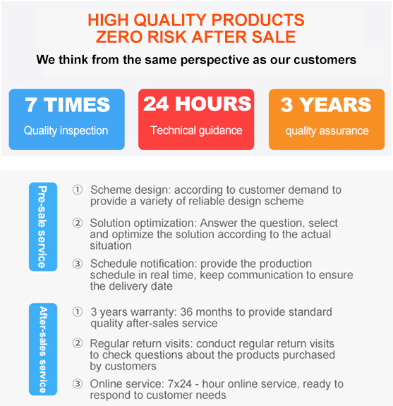 One-stop service:Pre-sales and after-sales training, installation, maintenance and technical support, comprehensive solutions, 24-hour reply to customer problems, the whole process tracking