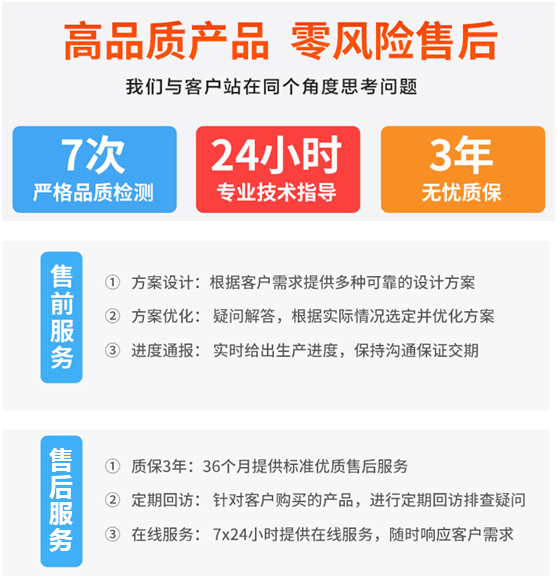 服務一條龍:售前售后培訓、提供安裝維修和技術支持、全方位解決方案、24小時回復客戶問題、全程跟蹤